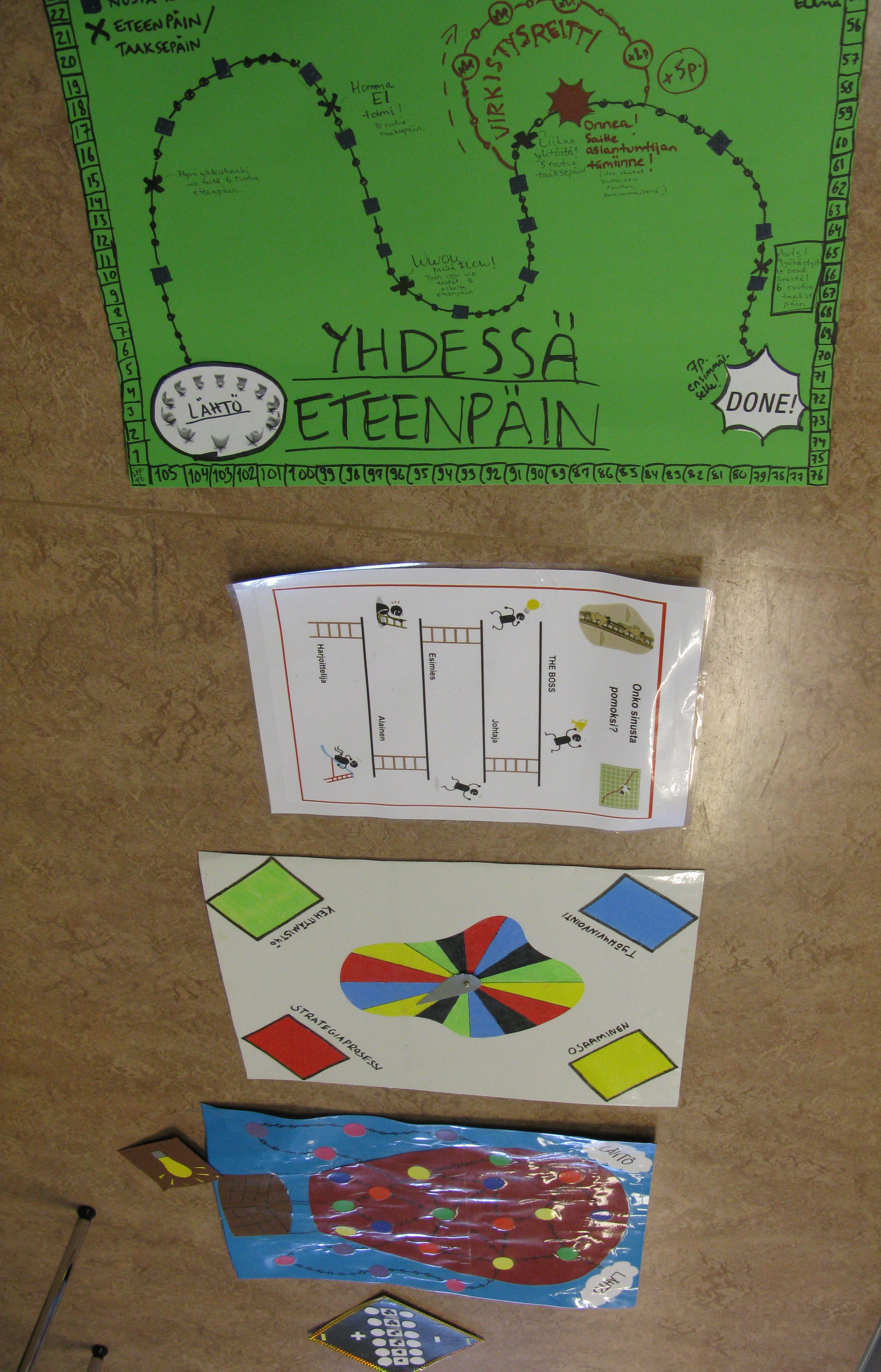 Opiskelijat muodostivat 4 – 5 hengen tiimit ja alkoivat ideoimaan ja tekemään pelejä. Tuloksena syntyi kuusi lautapeliä: Johtohahmo, Onko sinusta pomoksi, MääTierän, Onnea johtajuuteen, Yhdessä eteenpäin, Matkalla johtajuuteen -pelit.