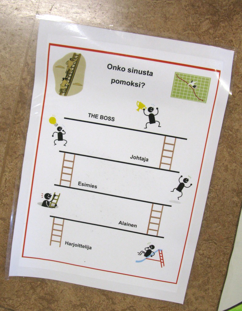 Esimerkiksi ”tikapuupeli” perustui ajatukseen, miten harjoittelija kehittyy alaistaidoissa ja siirtyy esimiestaidoissa johtajaksi eli bossiksi, Harjoittelijalle esitetyt kysymykset olivat erilaisia kuin johtajalle, peli kehittyi ja vaikeutui edetessään.