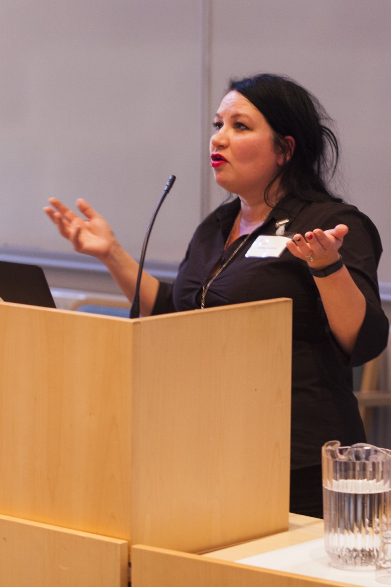 Ulla-Maija Seppänen todisti Kuntoutusosaamisen tuottaminen ja jakaminen yhdessä -seminaarissa Metropoliassa, että kyllä – oppiminen voi olla hauskaa ja se voi temmata opiskelijan mukaansa. Kuva Taneli Lahtinen.