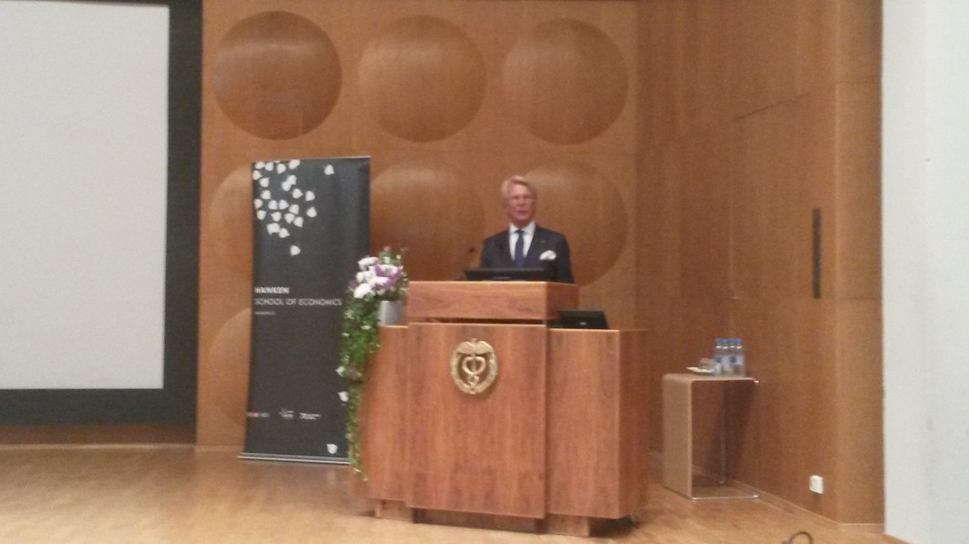 Pankkiiri Björn Wahlroosin intoa ja tarmoa pursunut puheenvuoro käynnissä.